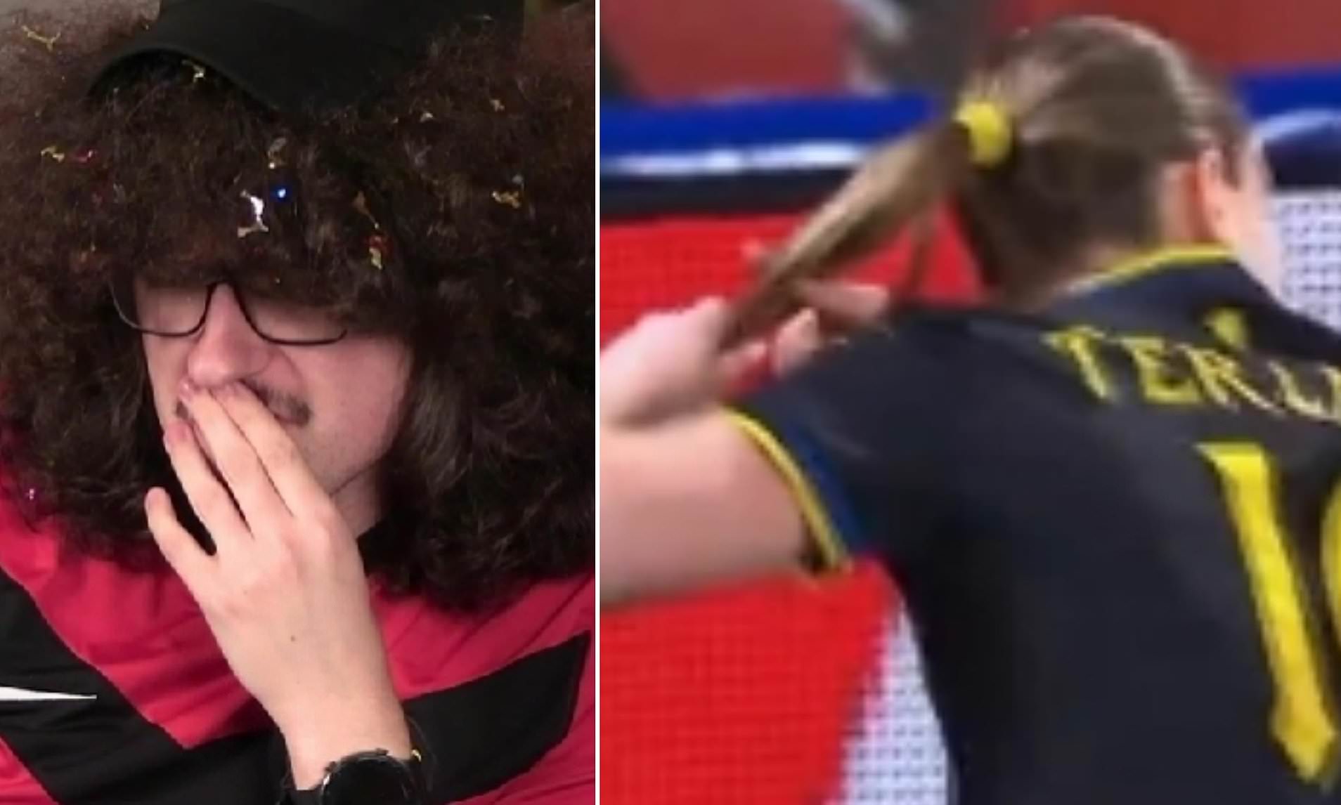 Elisabeth Terland opened the scoring in the third minute of the game, and the goal scorer, alongside England defender Maya Le Tissier, were seen pretending to cut their ponytails.